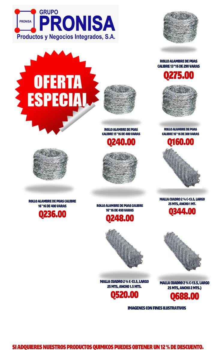 | Malla cuadro 2 3/4 calibre 13.5 | largo 25 metros ancho 1 metro |